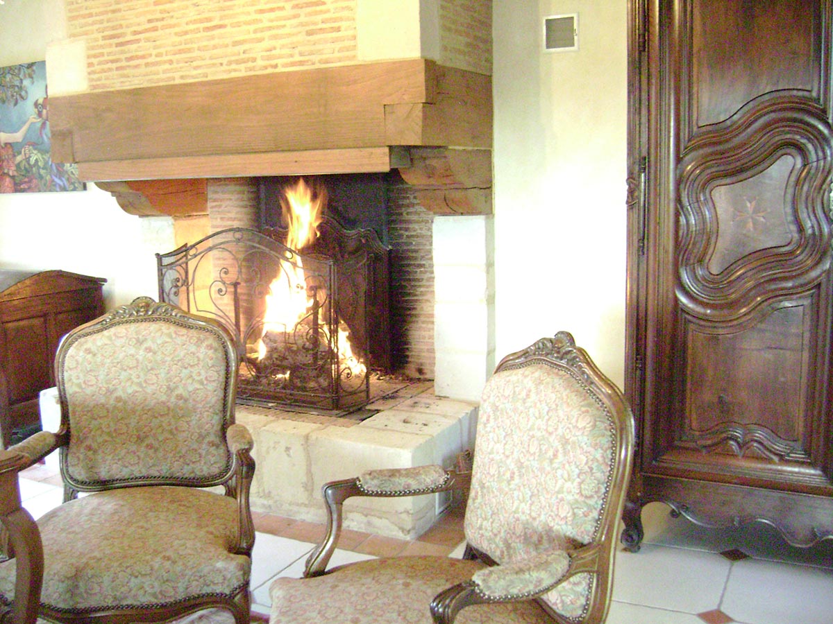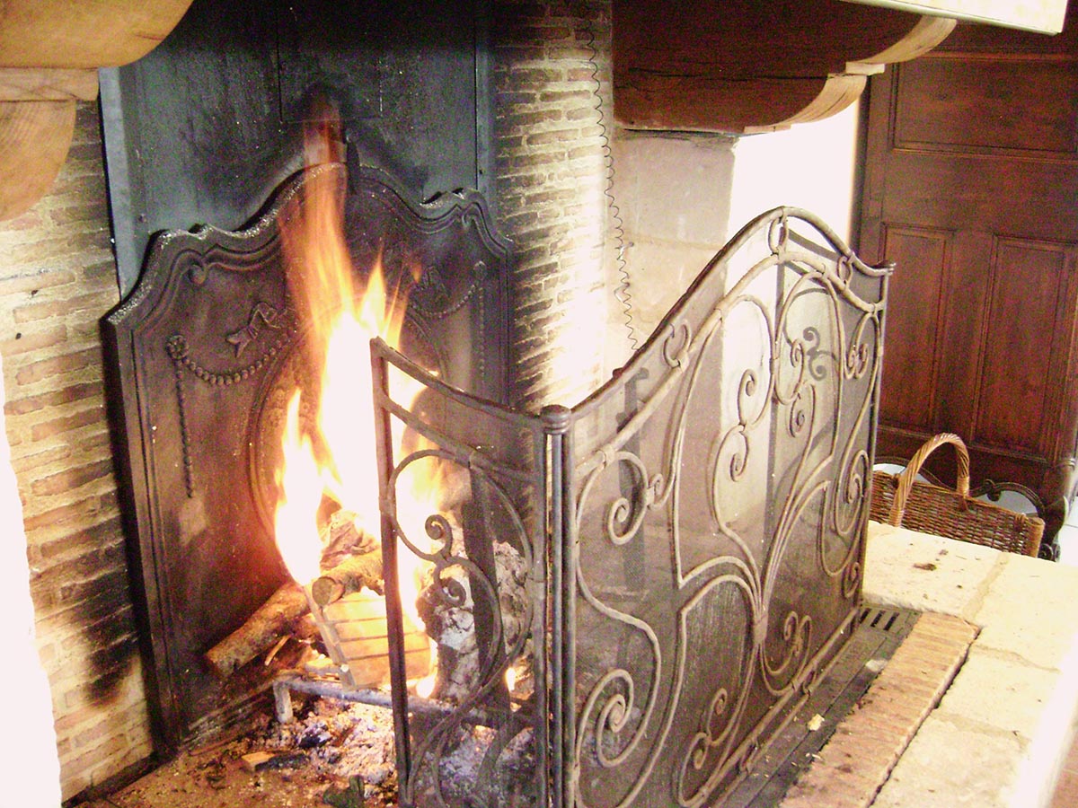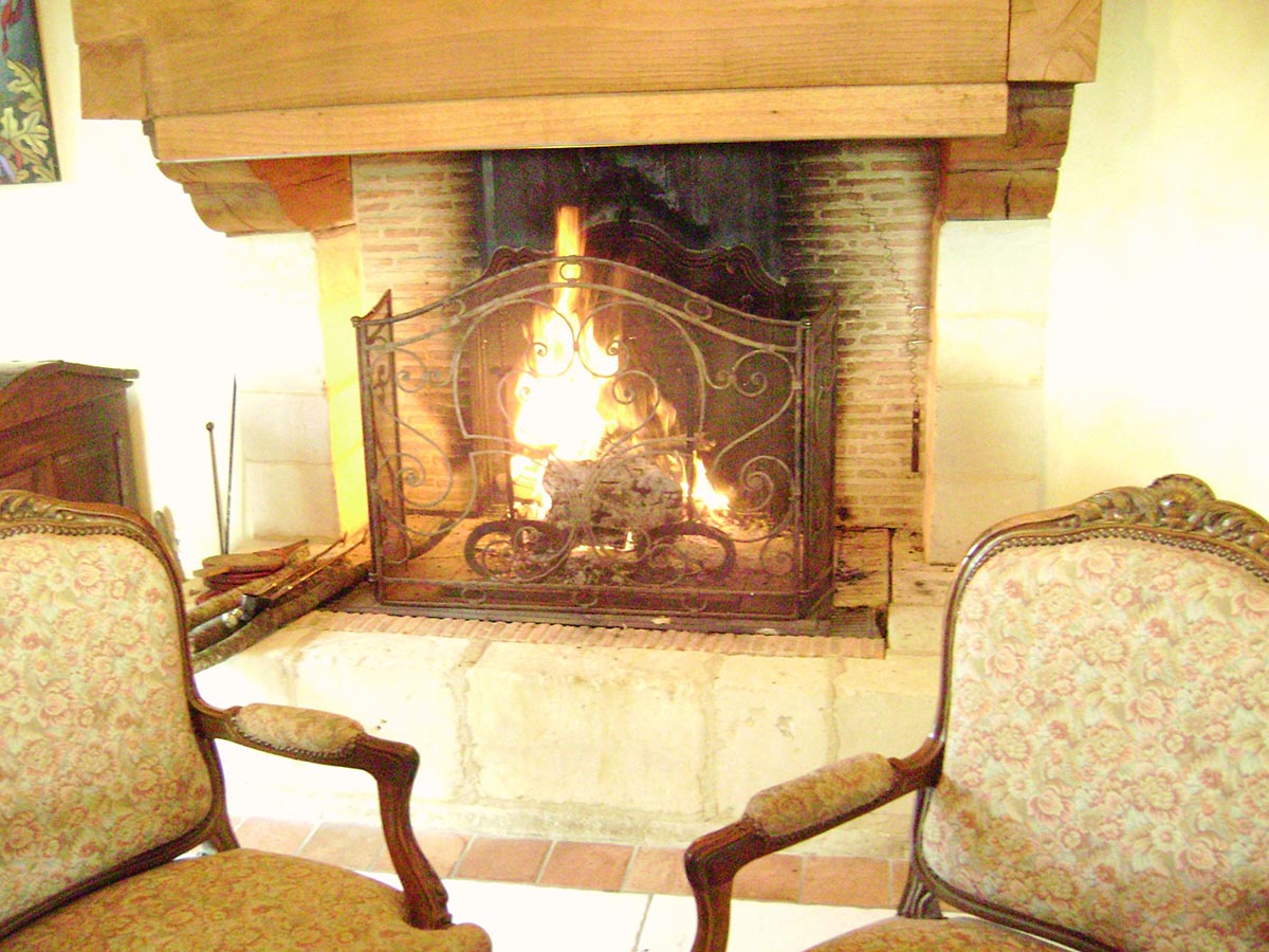 La grande cheminée embaume le bois et contribue à la détente et au bien-être de l’hiver.