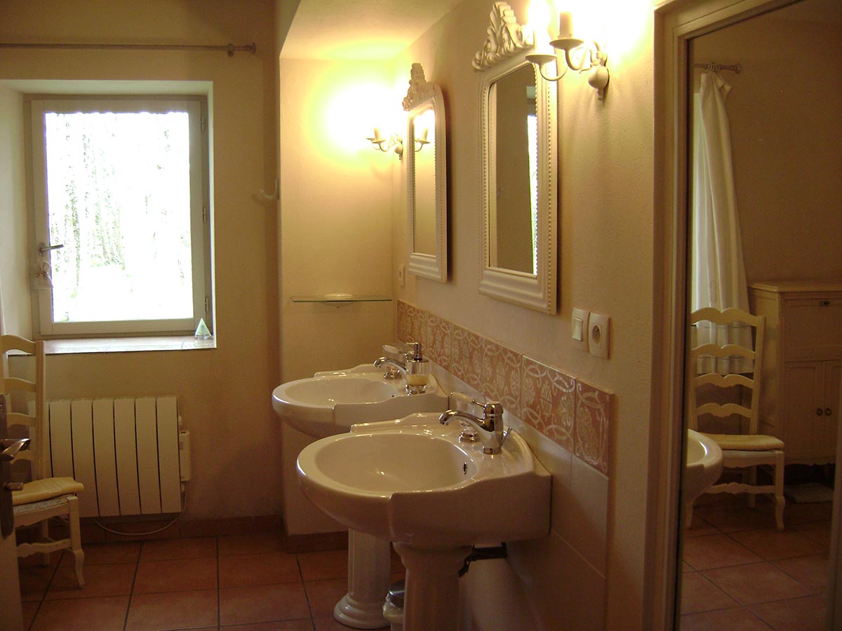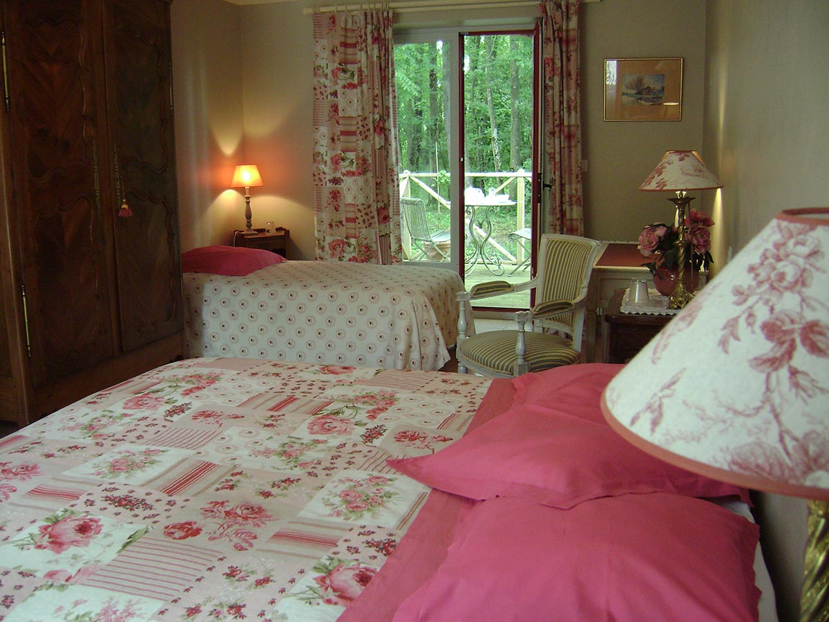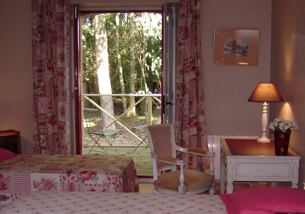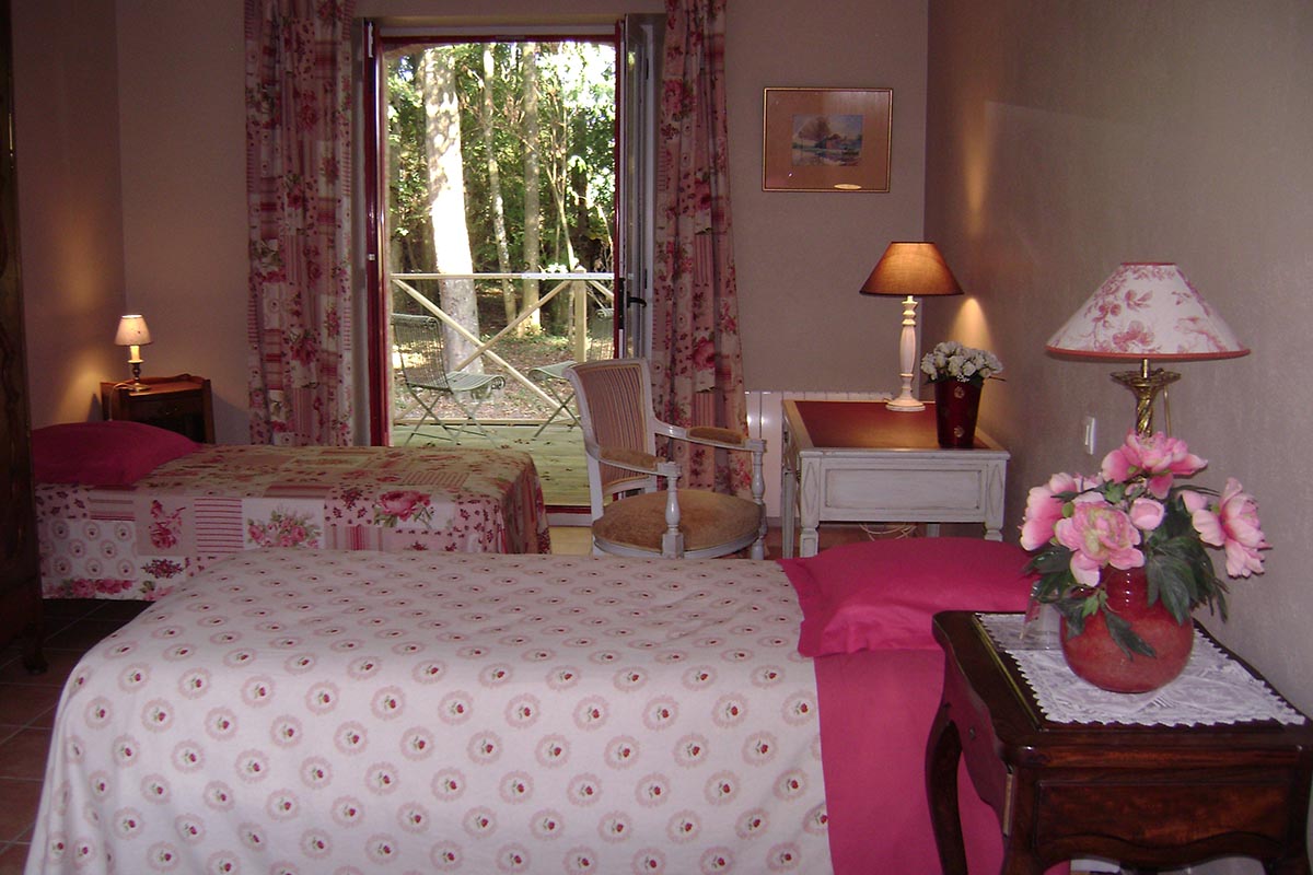 38m² pour votre confort, une chambre chaleureuse et familiale pouvant recevoir 4 personnes. Située au rez de chaussée avec son entrée indépendante et sa propre terrasse meublée sur le bosquet. 2 lits 90×200 pouvant être rapprochés, un lit de 90×190 et un lit d’appoint si besoin. Grande salle d’eau fermée avec douche à l’italienne, double vasque. WC séparés. Petit bureau, wifi et coin détente.
